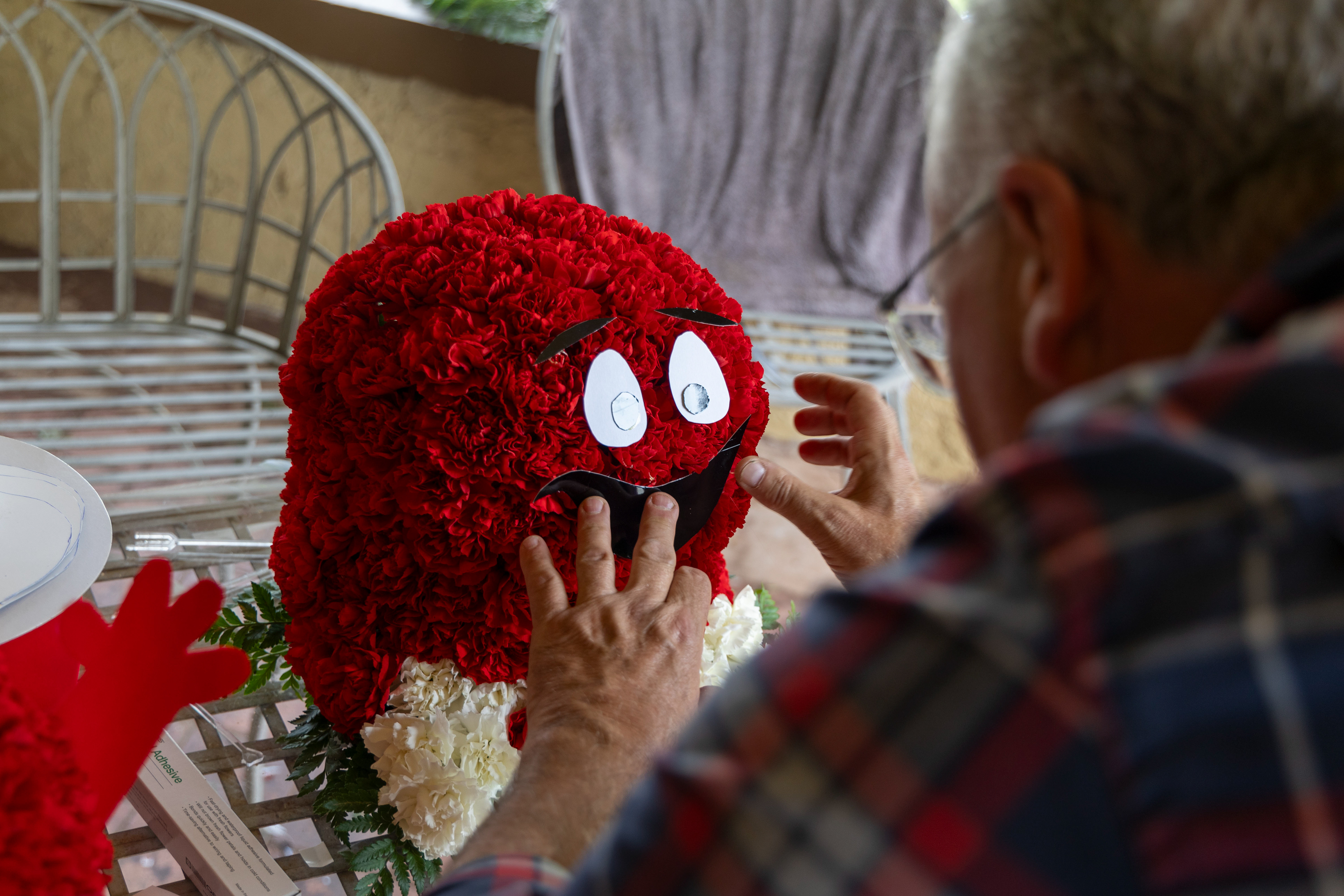 Clinical Assistant Professor of Horticulture and director of the WKU Florist Certificate Roger Dennis helps students build Big Red-themed flower arrangements for the upcoming graduation ceremony on Thursday, May 8, 2025 at the WKU Floral Design Training Center.