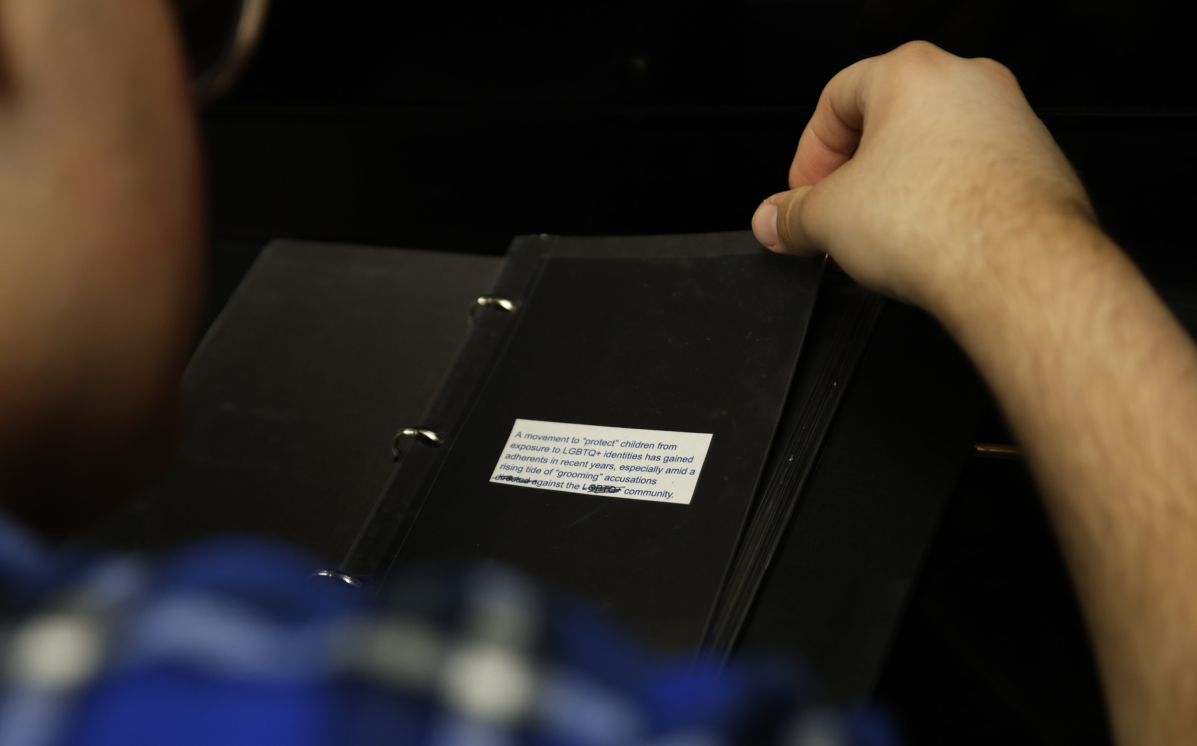 Jacob gets emotional after reading lines off his forensics lines book. that takes about the inequalities of being part of LGBTQ+ community. “its kind of like victimizing and villainizing, this art form has helped many people grow and help many people figure out who they are."